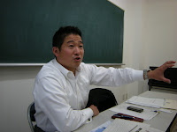 2時間の講義を終えた中間さん、(汗びっしょり!)「いつでもコーヒーでも飲みに遊びに来て下さい!」と笑顔で見送って頂きました。 (本部1階エントランスにはキッズスペースとラウンジがあります。アラヘルスの皆さん気軽に遊びに行きましょう。)