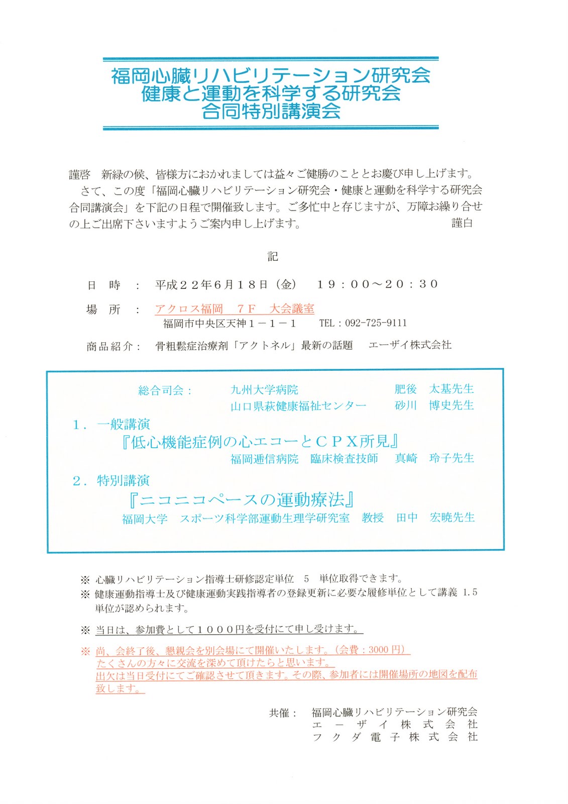 平成22年度健康運動指導者研究交流会 2月5日(土)~6日(日) 於 あいれふ です。